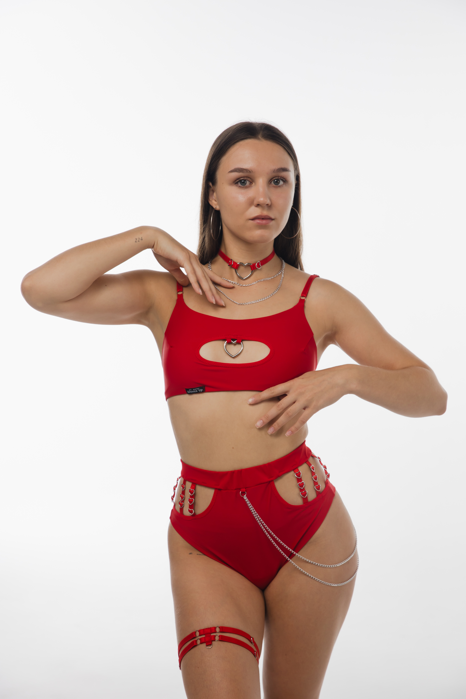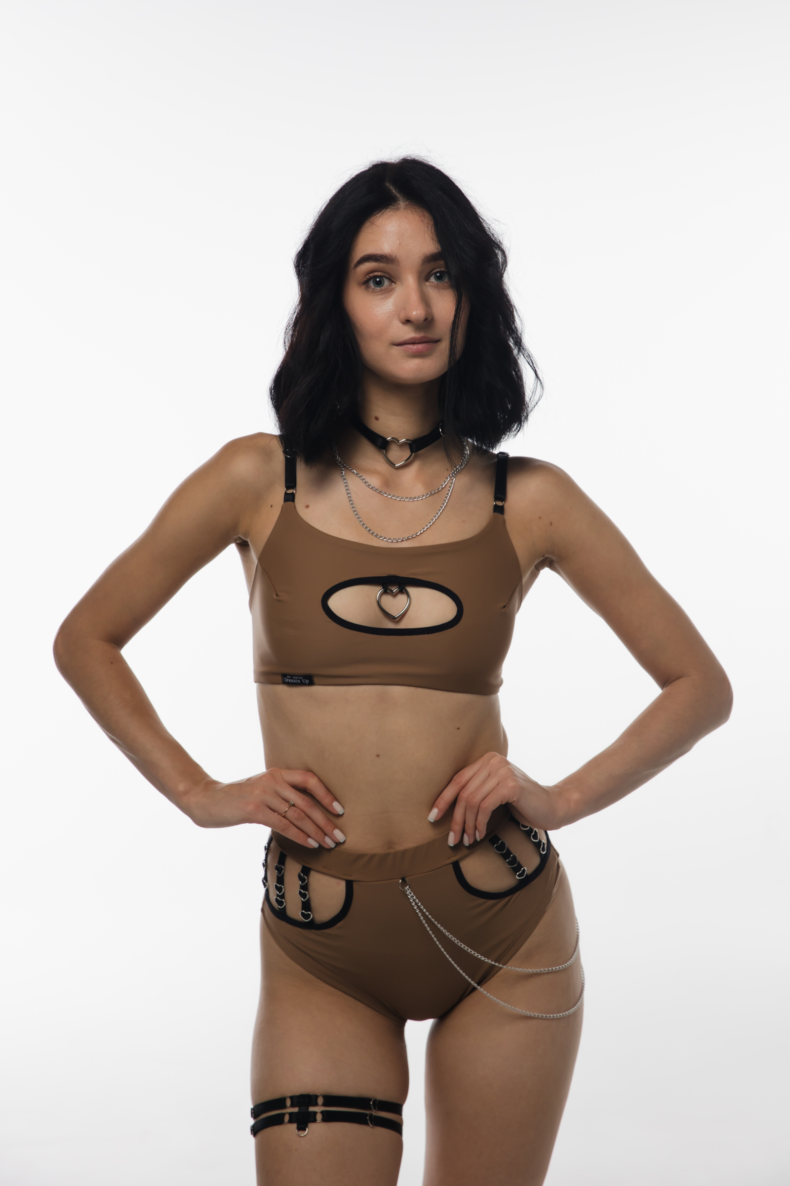 The Amoria top combines bold design with a smooth matte finish. The heart-shaped ring at the front cutout adds a statement detail, while adjustable straps and a detachable choker allow you to customize your style. Made from soft stretch fabric that follows every movement, this top offers both comfort and confidence. Perfect for pole dance, stage shows, or powerful performance looks.