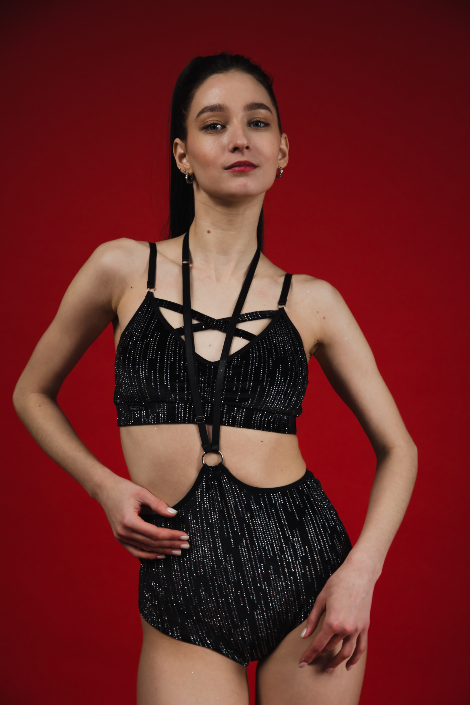 Soft, confident, and radiant ECLIPSE Velvet Leotard — this velvet leotard is made to highlight your movements with power and grace. The shimmering stretch fabric embraces your body perfectly, while the adjustable harness and detailed straps create a bold, elegant silhouette. Designed for all types of dance and performance — from pole and heels to yoga, stretching, and fitness training.