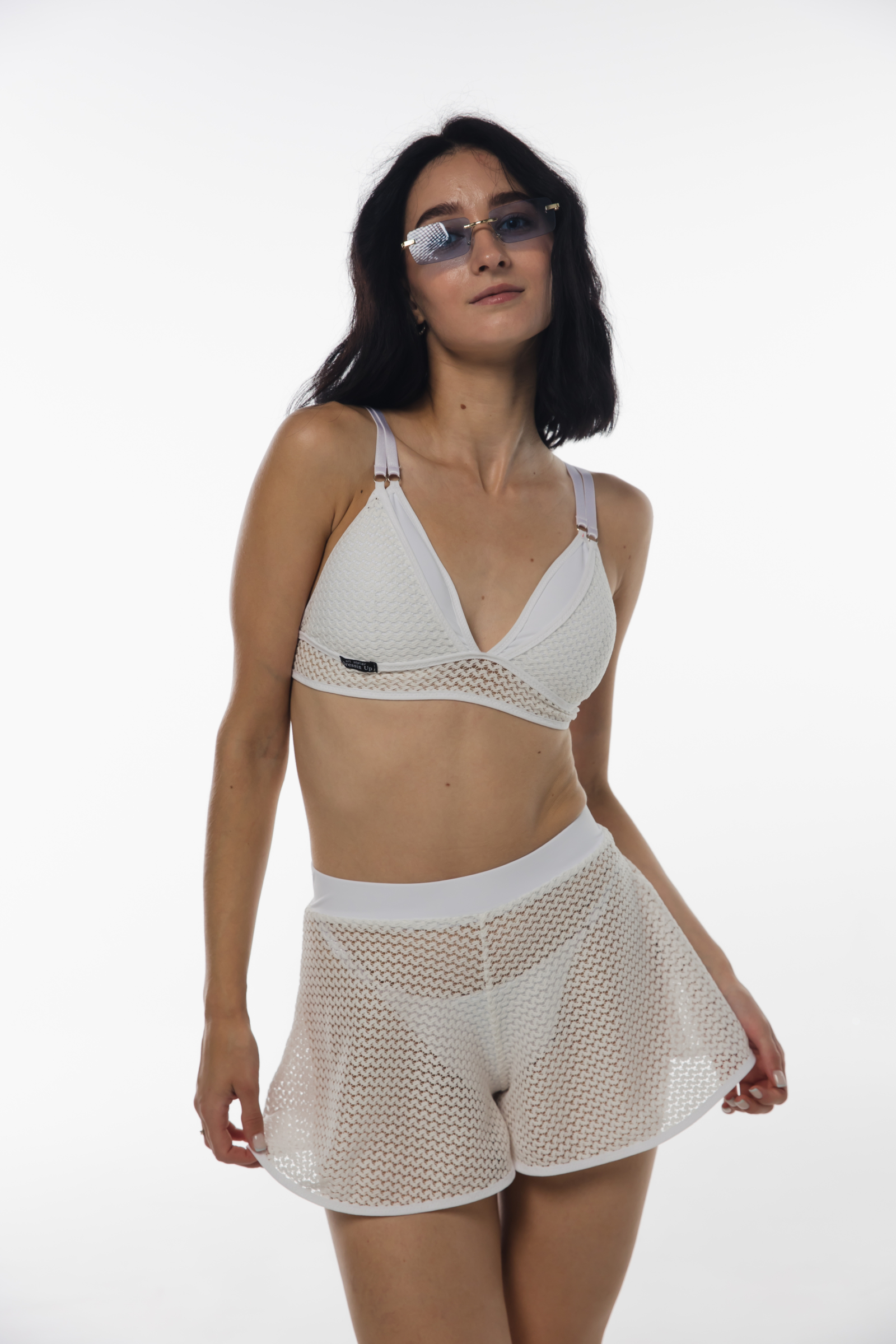 MUSE 2 – Transparent Mesh Skort Set with Triangle Top