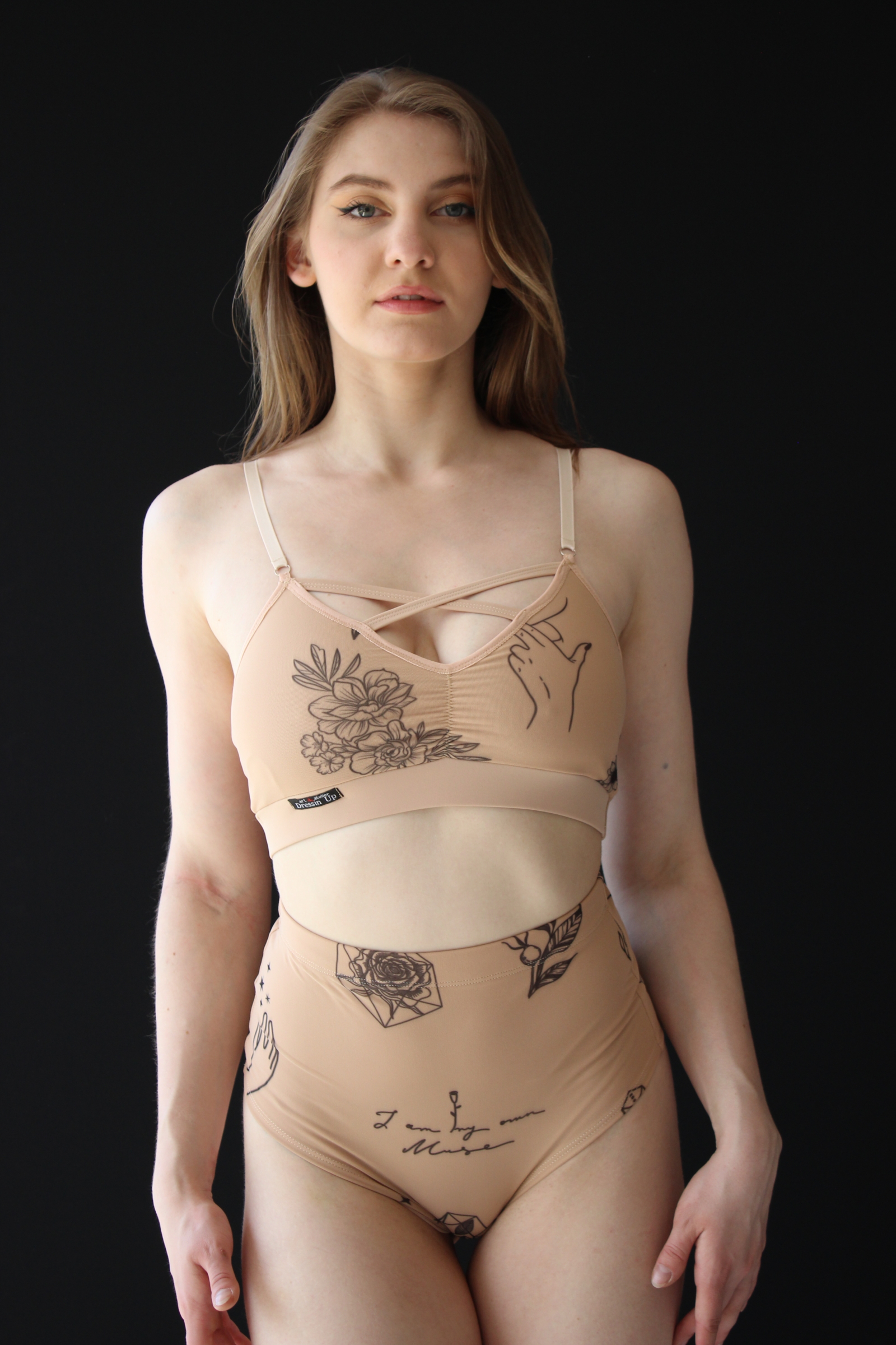 Tattoo Basic Shorts — simplicity with a bold twist. These high-waisted nude shorts with artistic tattoo-style graphics create the perfect balance between minimalism and statement design. Crafted from smooth, stretchy fabric that moves with your body, they deliver both comfort and visual impact — ideal for training or performance. Perfect for pole dance, twerk, stretching, yoga, and stage wear.