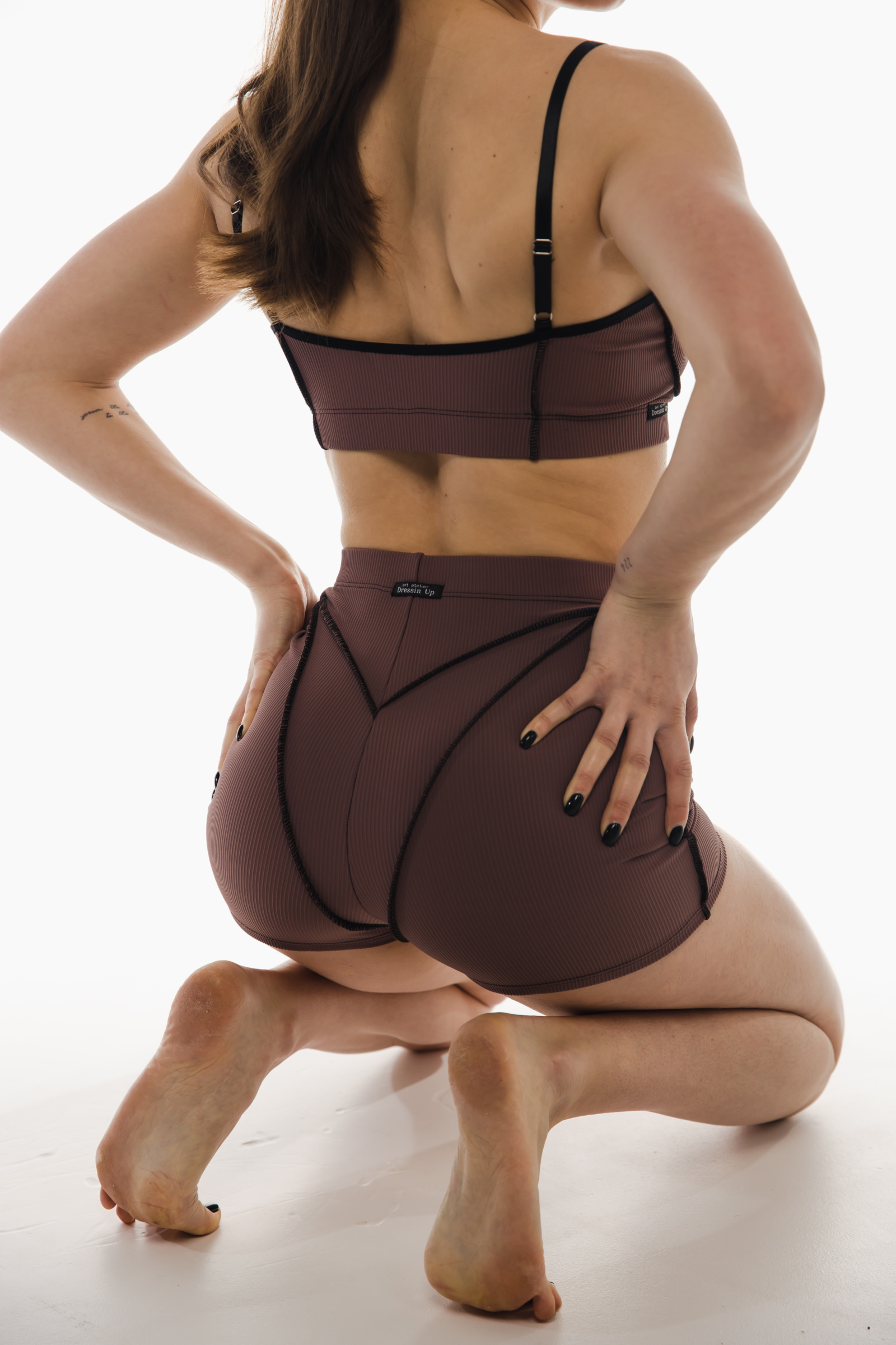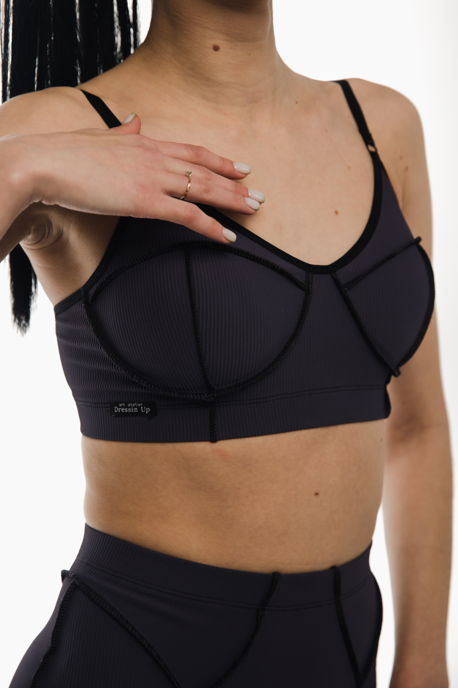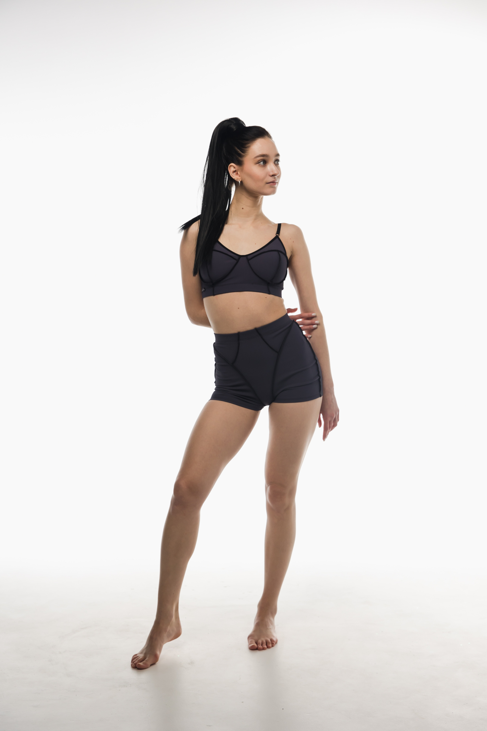 Soft, flexible, and empowering Vibe Set — this sculpted two-piece set enhances your body’s natural lines while offering full comfort and support. The ribbed stretch fabric gently hugs your curves, while decorative seams create a dynamic, stylish shape. Perfect for pole dance, fitness, yoga, stretching, or casual studio training. Perfect for pole, yoga, fitness, or studio practice.